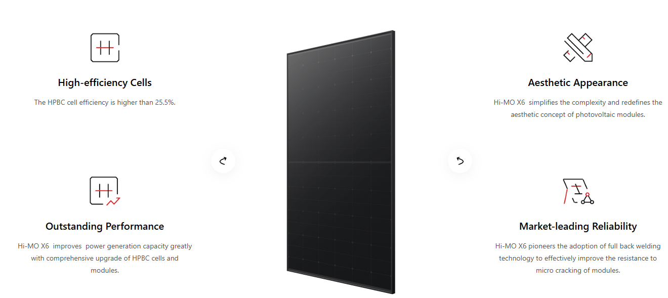 The LONGi Hi-MO6 Explorer LR5-72HTH560-580M is a high-performance monosilicon module (part of the Hi-MO X6 family) designed for maximum long-term value. Delivering up to 580W of power from 144 cells, it utilizes an efficient bi-facial system for superior energy generation.The module is built for durability, featuring a single 3.2mm tempered glass and IP68 protection, and is backed by a 15-year product warranty and a leading 25-year performance warranty.